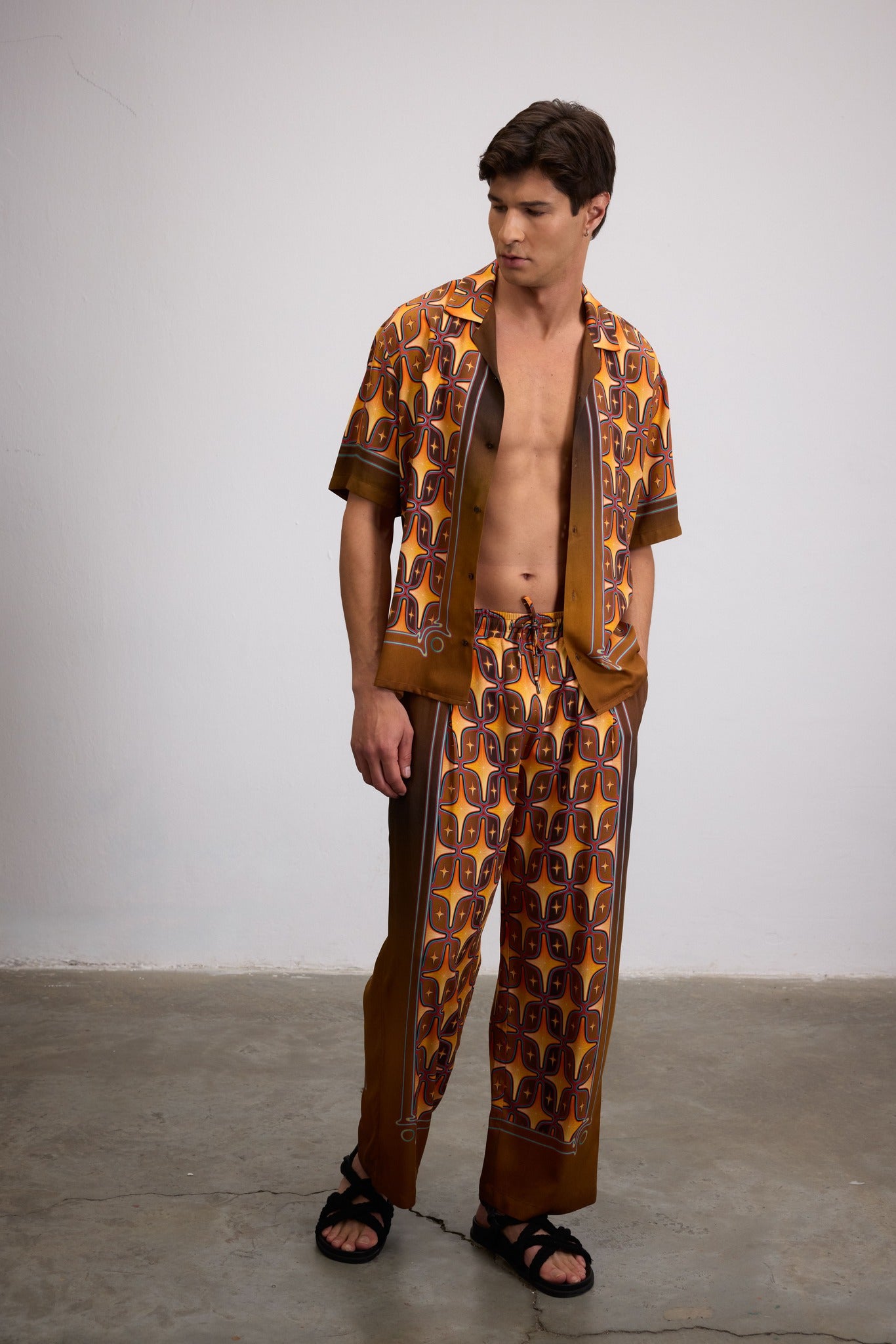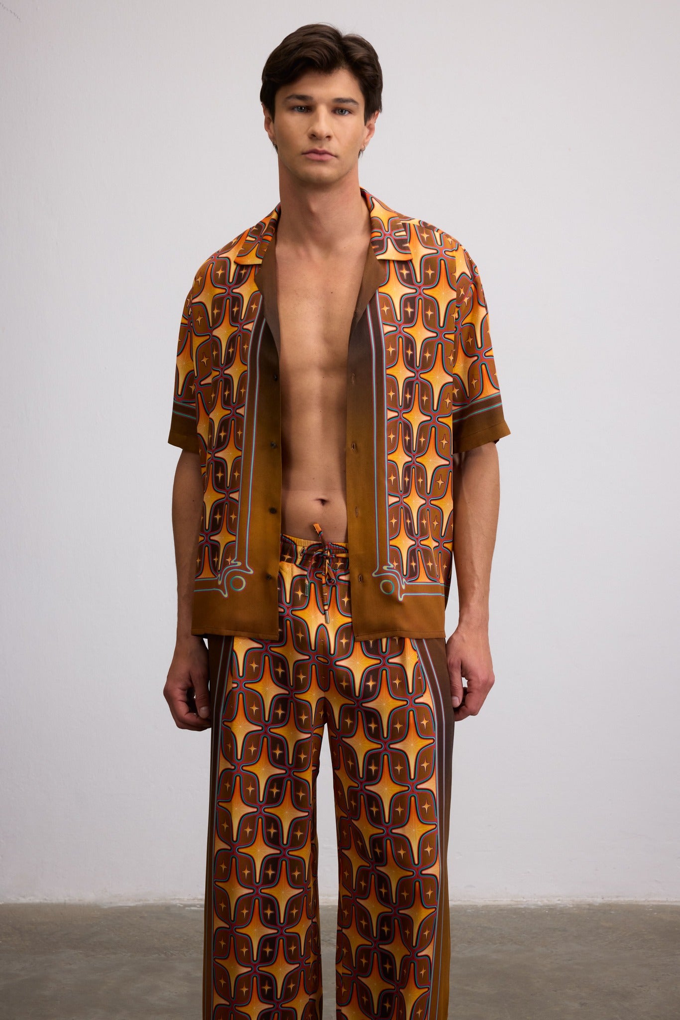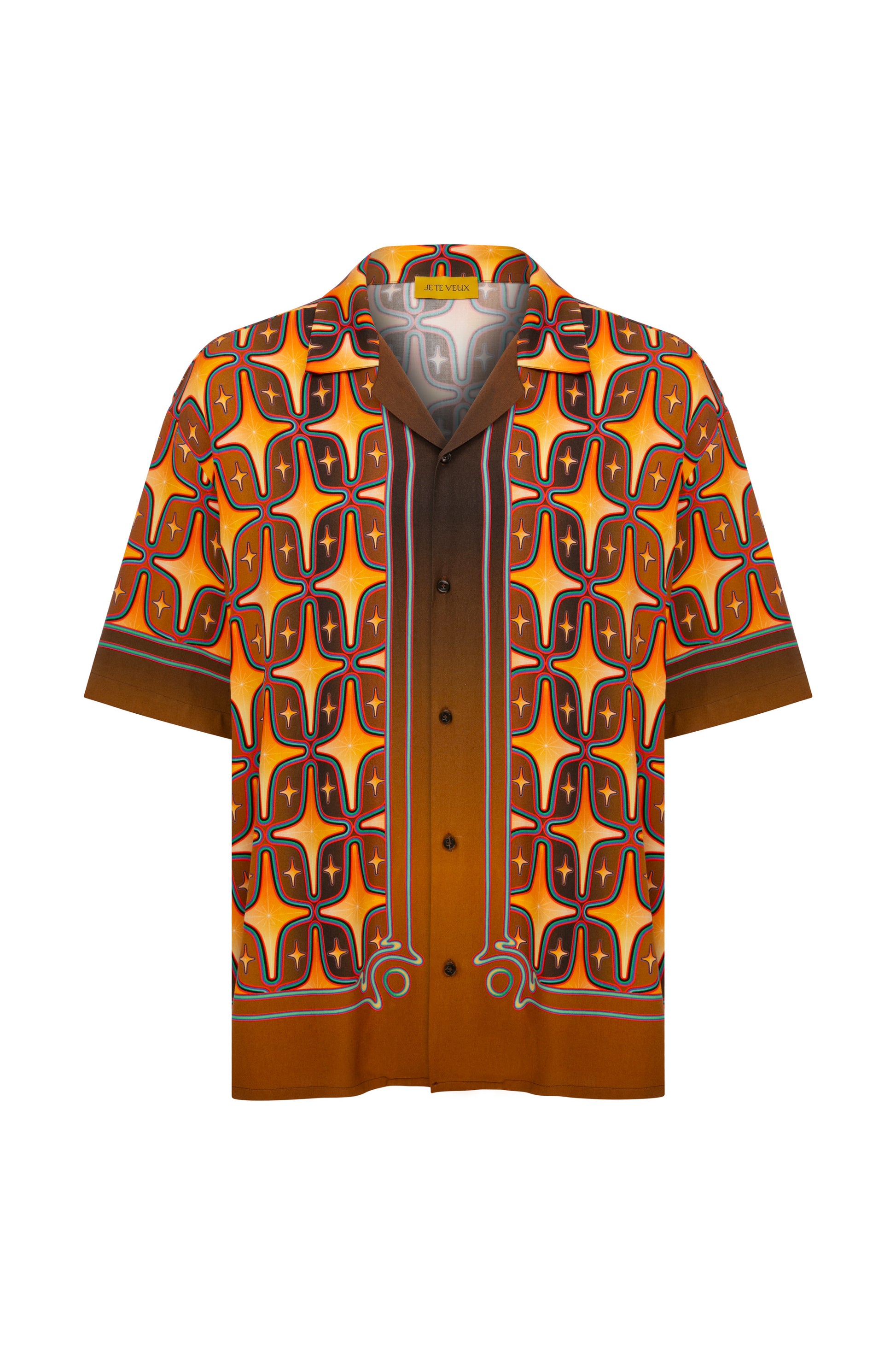A retro-inspired standout, the Sirius Shirt blends warm sunset tones with geometric patterns for a bold yet refined look. Made from 100% natural viscose fabric, it offers a breathable and lightweight feel, and with its relaxed fit and camp collar, it’s perfect for summer nights and statement days. Delicate Garment – Handle With Care. Wash at 30°C. Hang to Dry.