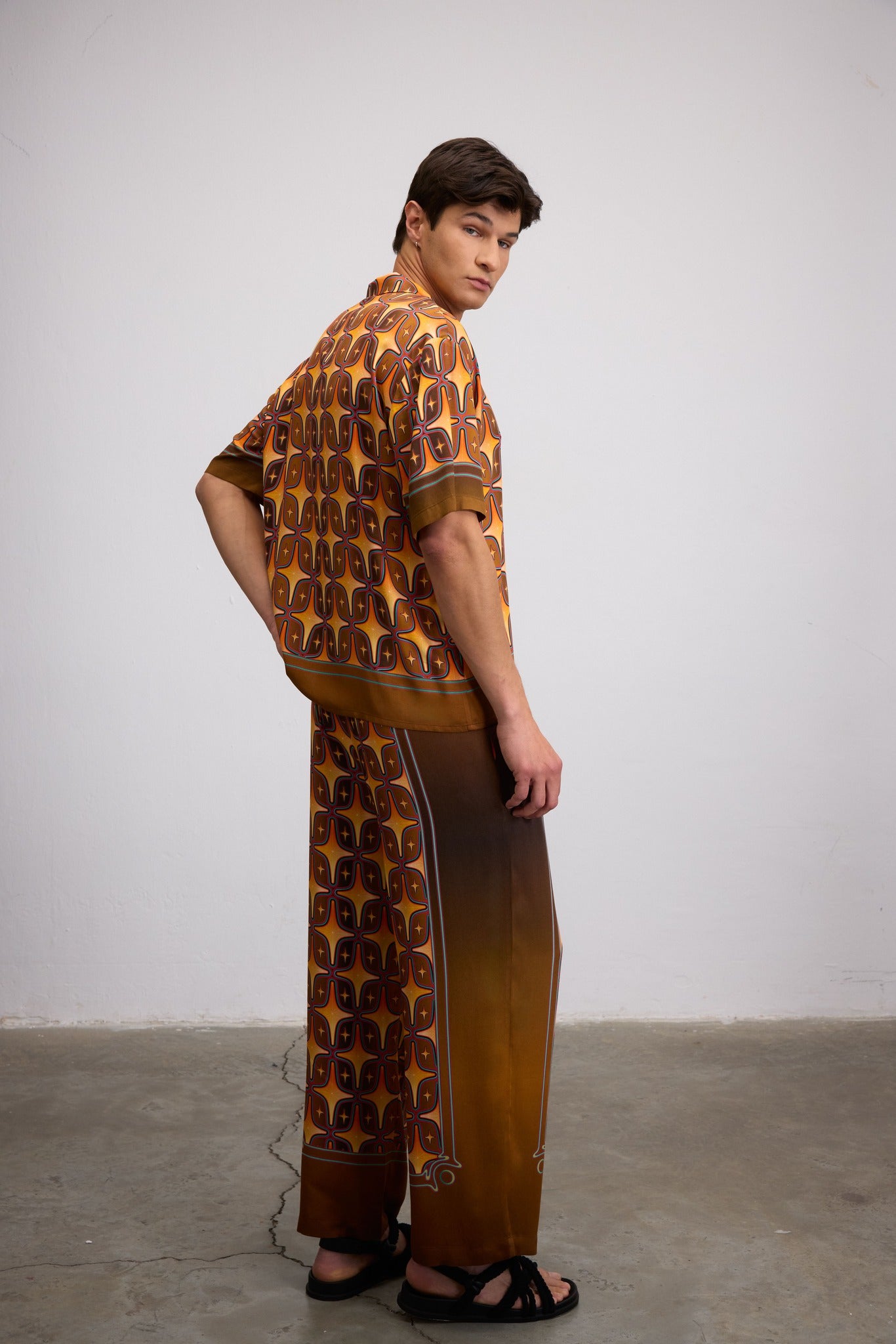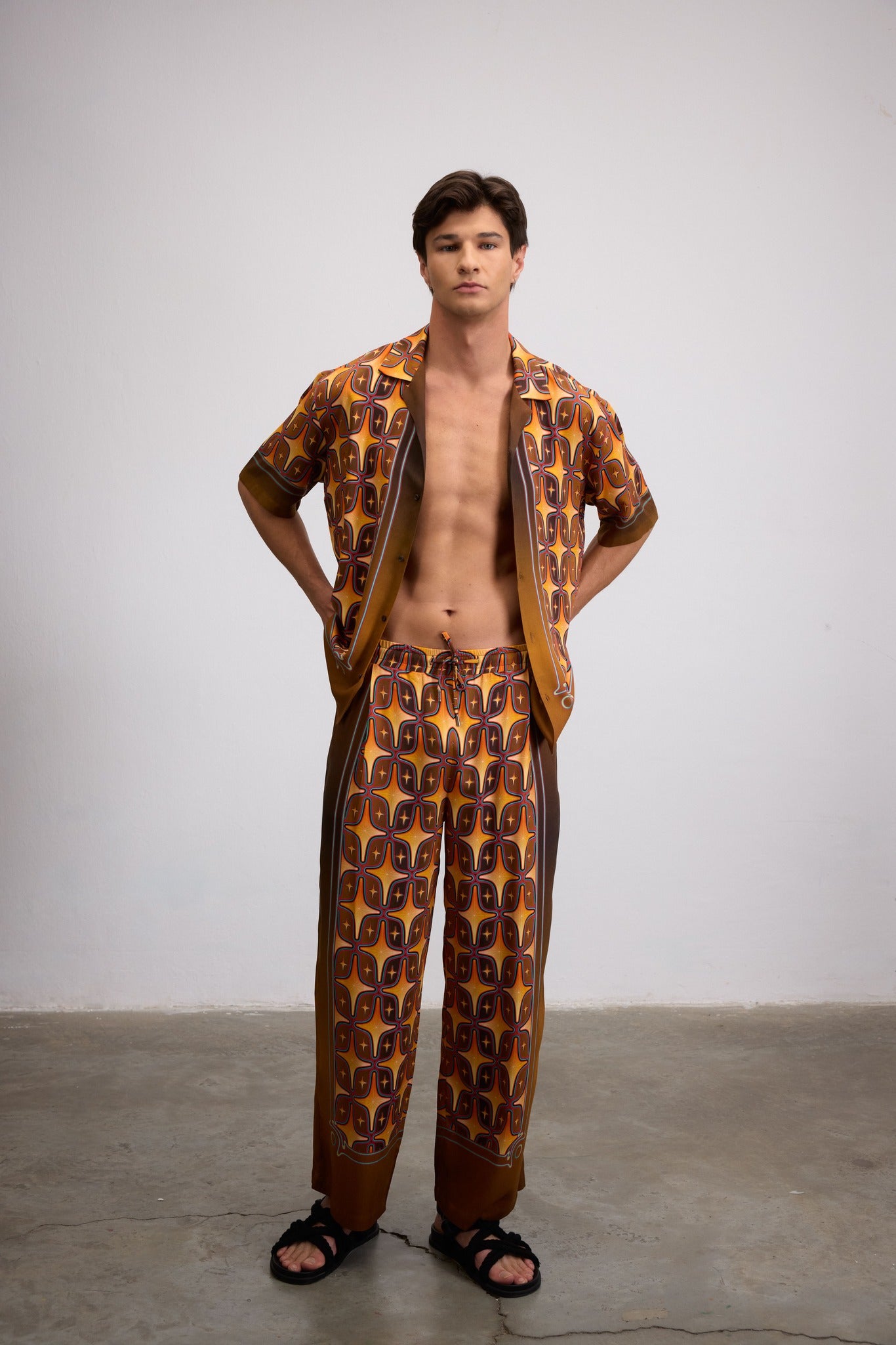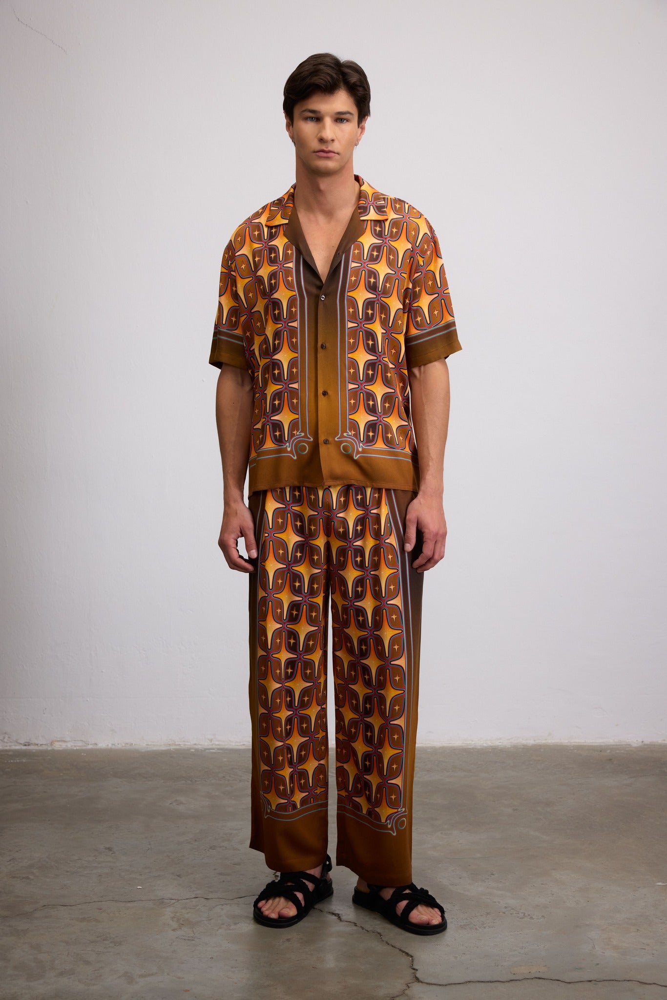 A retro-inspired standout, the Sirius Shirt blends warm sunset tones with geometric patterns for a bold yet refined look. Made from 100% natural viscose fabric, it offers a breathable and lightweight feel, and with its relaxed fit and camp collar, it’s perfect for summer nights and statement days. Delicate Garment – Handle With Care. Wash at 30°C. Hang to Dry.